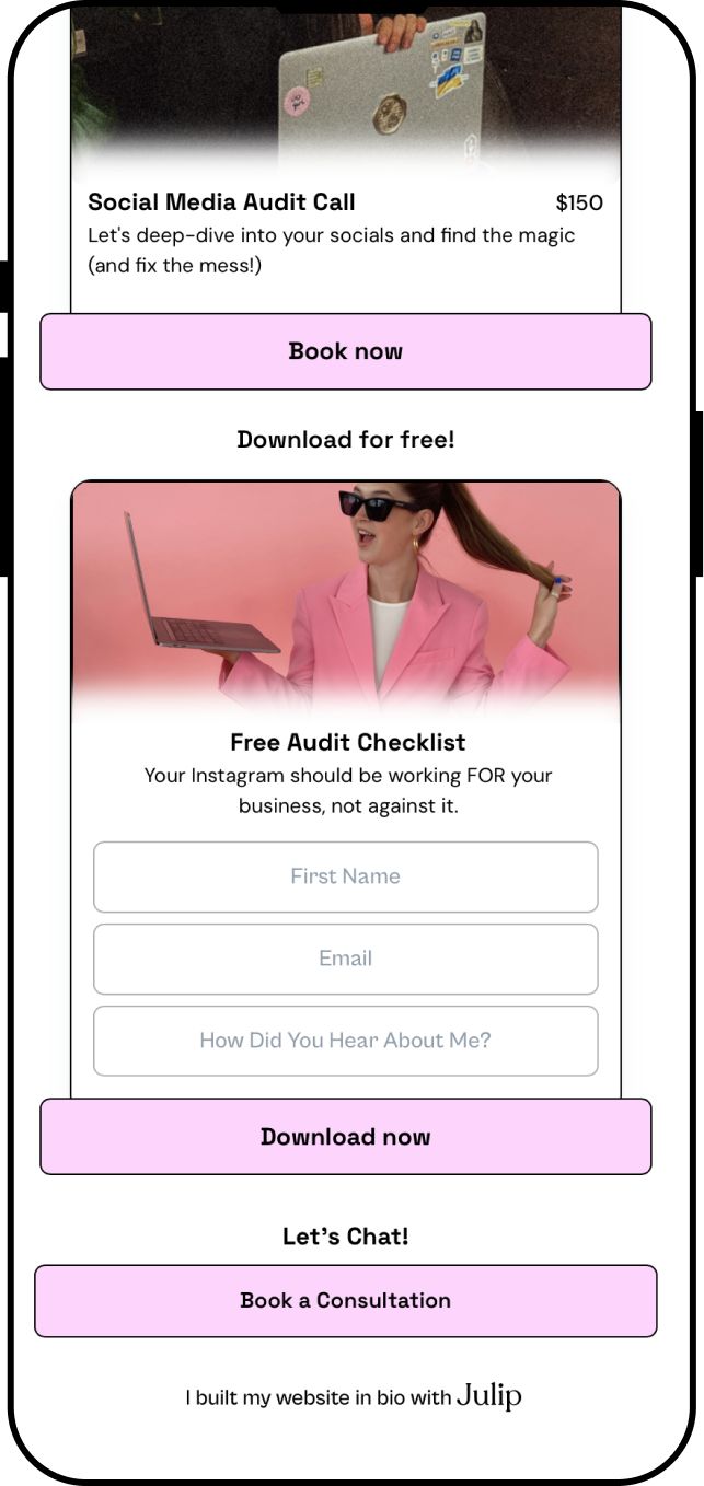 Unlike basic link-in-bio tools, Julip lets you customize product images