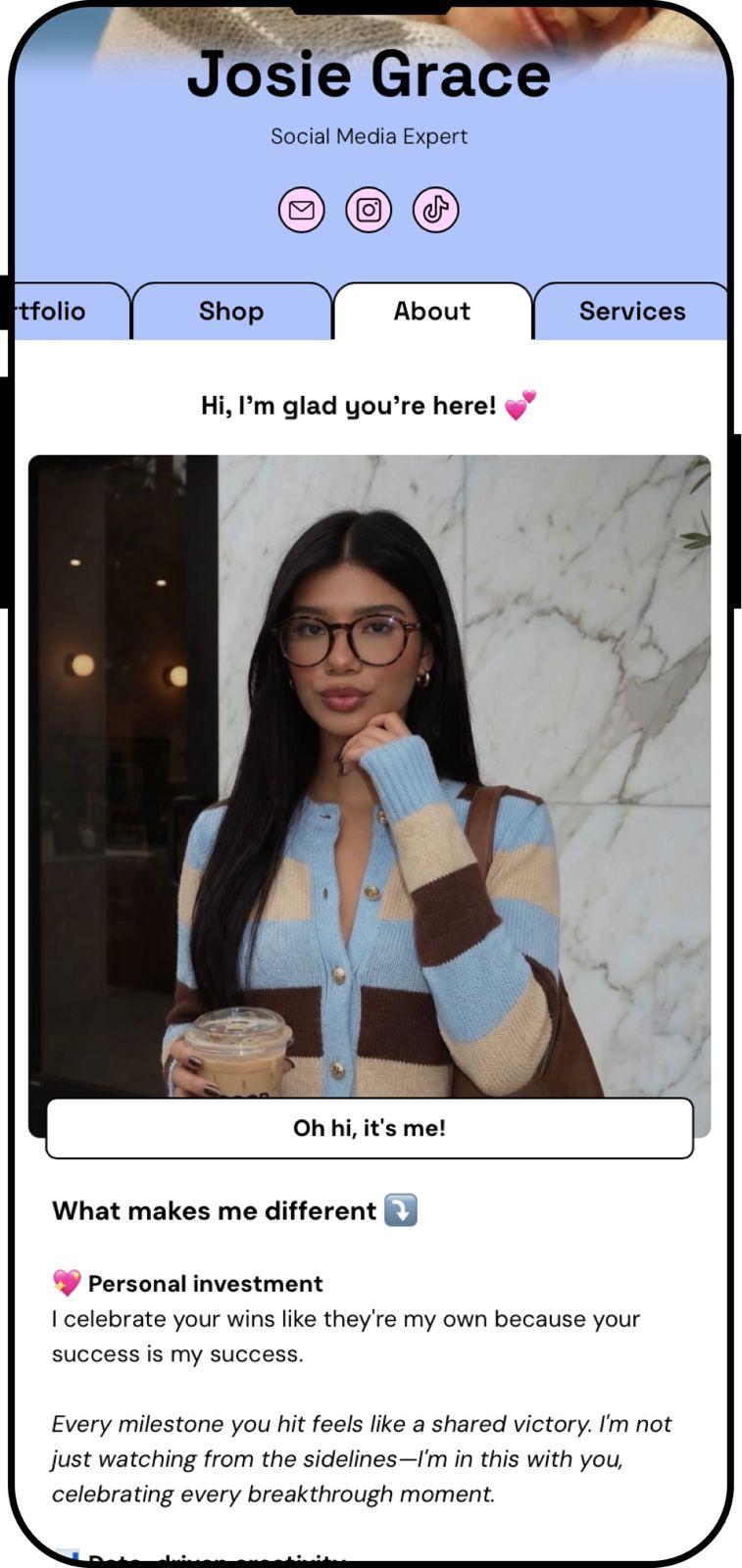 Build a website in a day for your clients. No more linktrees or complicated sites like SquareSpace or Wix. Use our FREE template to send to clients to make it SO easy!